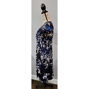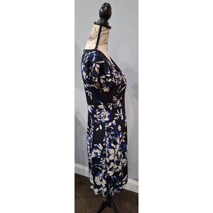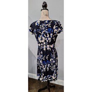 EUC Lauren Ralph Lauren Navy Blue Floral Petite Flutter Sleeve A-Line Dress/Sz.