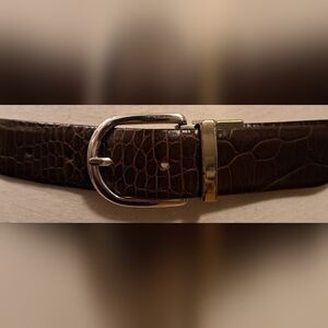 EUC Lauren Ralph Lauren Tan & Brown Croc Reversible Boho Neutral Belt SZ 36in