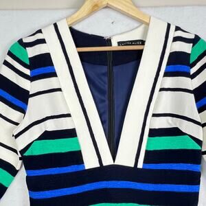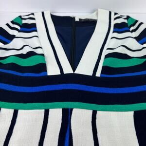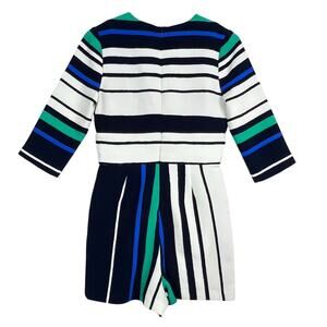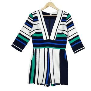 EUC Lavish Alice White Playsuit Blue Green Black Stripes Multicolored Romper 4