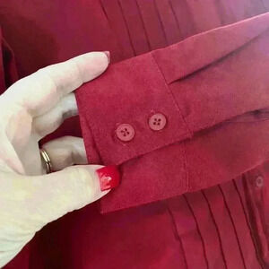 Excellent condition! No flaws! Rich dark red button down, dressy. Front detail. Polyester feels like velour, very soft material. Women’s Petite Small. Designer brand, Lemon Grass Studio. Smoke free home.