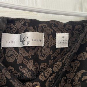 EUC Lena Gabrielle 4 Way Stretch Pull-on Pant in Dark Brocade Print.