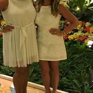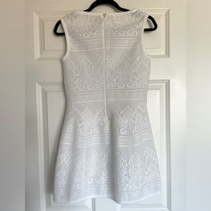 EUC size Medium Leon Max Limited Edition White Lace Shift Dress. Gorgeous and flattering darting detail, lined and thick with structure. Beautiful shape! Worn once, would be perfect for a rehearsal dinner or bachelorette party!