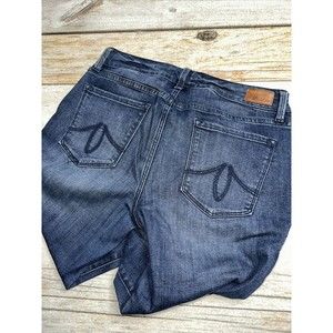 Elevate your denim game with these Level 99 Lily Skinny Straight Jeans in size 30. These pre-owned jeans have been well-maintained and are in excellent used condition. The medium wash and distressed style provide a trendy look. The slim fit flatters the figure while the stretch fabric ensures comfort. These jeans feature a zip and button closure and multiple pockets, providing convenience. Perfect for any casual occasion, these blue jeans will be a versatile addition to your wardrobe.