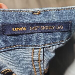 EUC Levis 545 Skinny Dark Jeans, no flaws and great quality and color. Waist flat is 15", 9" rise and 30" inseam. No major flaws