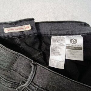 Excellent Used Condition: Levi's 720 Sze 20W Gray High Rise Super Skinny Jeans. This flattering pair features a stylish gray wash that is versatile enough for both casual and dressed-up looks. The high-rise waist and super skinny fit are designed to sculpt and hug your curves, while the comfortable stretch denim ensures a perfect fit that moves with you all day. A staple piece for any wardrobe, these jeans are ready to be your new favorite.