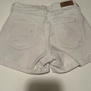 EUC Levis Womens White Mid Length Stretch Cuffed Jean Shorts Size 26 (B5)