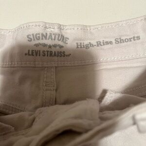 These Signature white jean shorts offer a timeless look with their classic denim construction and regular fit. The clean white color makes them a versatile addition to any wardrobe, perfect for pairing with a variety of tops for a chic, casual outfit.