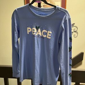 EUC Life is Good Small Blue Long Sleeve Shirt Peace, Holly On Sleeve. #096
