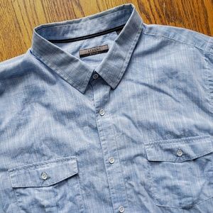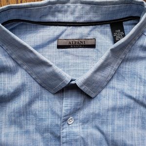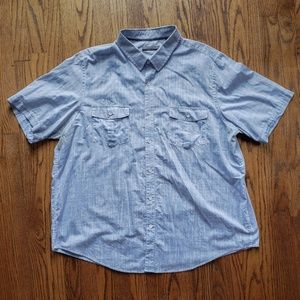 Lightweight light blue short sleeve button up with double pockets from Alfani. I really like the white metal buttons - they give it a more unique feel. Great casual spring/summer/fall shirt!