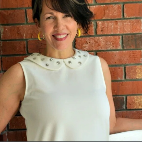 🤍 EUC Like New Ann Taylor Peter Pan Sleeveless Rhinestone Studded Top