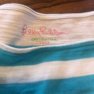 EUC, no signs of wear. White/turquoise Marlowe Dress, size Large. 100 percent cotton.