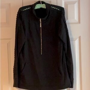 EUC Lilly Pulitzer ONYX Skipper Popover, beautiful black! LARGE, Lace Sleeves