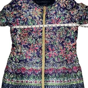 EUC Lilly Pulitzer Navy Floral Reversible Puffer Coat Jacket Gold Details