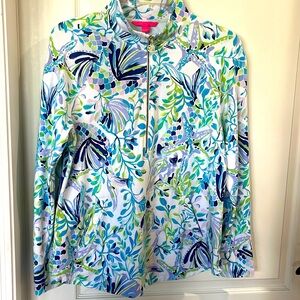 Keywords: Lilly Pulitzer Skipper Popover, UPF 50+ pullover, quarter zip top, Lilly Pulitzer XL, Lilly Pulitzer resort wear, beachwear, sun protection top, preppy casual, colorful zip top, EUC Lilly Pulitzer, vacation clothing, poolside cover, summer wardrobe