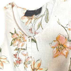 Cute floral 100% Linen tank top by Rachel Roy. Button front with peplum hem. Beautiful condition! Size Medium