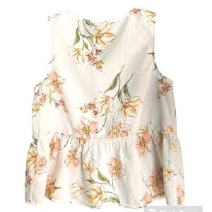 EUC Linen Floral Peplum Tank Button Front Hem Top, by Rachel Roy Medium