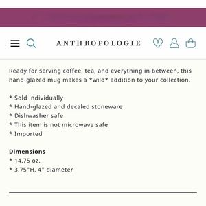 EUC. Lion Marisol {Anthro} Mug | Anthropologie Coffee + Tea Cup | Jungle Pride!
