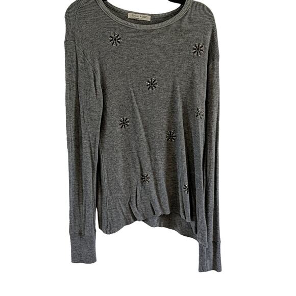 Gray soft long sleeve top with embellishments on front by Living Doll
