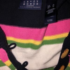 Excellent Used Condition Crazy Horse (A Liz Claiborne Company) 3/4 Button (Wooden) Up Hooded Sweater. Women’s X-Large (fits more like a large) tag. Pit to pit measurements is 21”. Material does stretch. Smoke Free Home. #crazyhorse #lizclaiborne #hoodedsweater