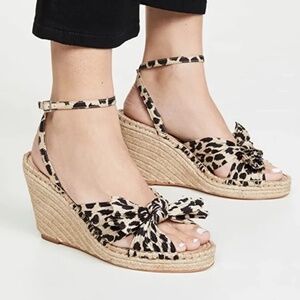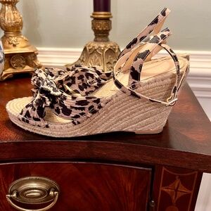 EUC Loeffler Randall Charley Leopard Knotted Bow Wedge Espadrille Sandals 8.5 B