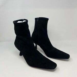EUC, Loeffler Randall Thandy Black Suede Curved Heel Booties, Size 11.5