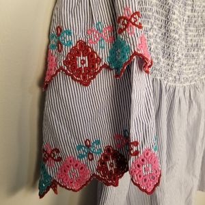 Color: Blue and White stripes with multi colored embroidery on sleeves
