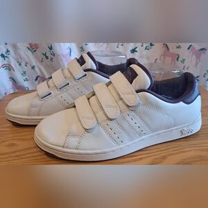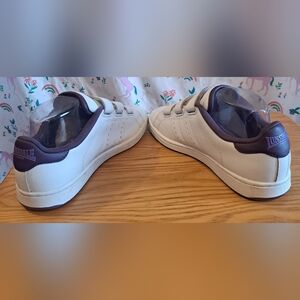 EUC Lonsdale Leyton White & Purple Leather Casual Neutral Sneaker Shoe SZ 9