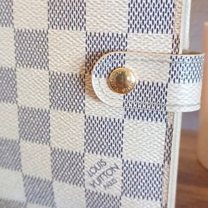 This elegant Damier Azur canvas agenda holds credit cards and features a press stud closure.