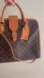 Chic Louis Vuitton satchel with iconic monogram pattern. Features sturdy tan handles and trim. Ideal for stylish outings.