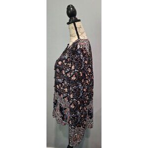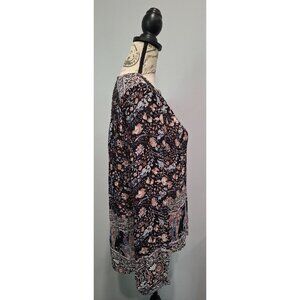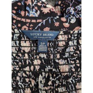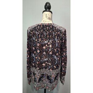 EUC Lucky Brand Black & Pink Floral Boho Long Sleeve Blouse/Sz. S