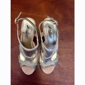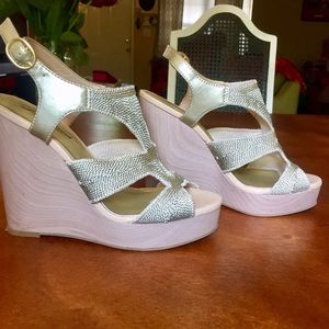 Adorable Lucky Brand wedges only worn twice! Size 7.5. No signs of wear. Nude color has a tasteful slight shimmer.