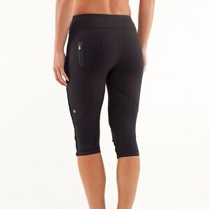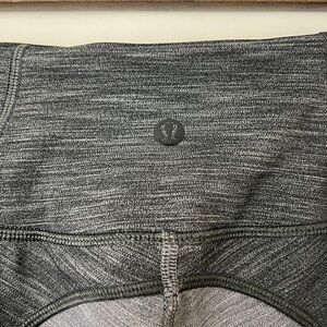 EUC Lululemon Early Extension heathered black titanium silver screen. Approximate Measurements (laying flat): waist: 9.5” rise: 9” inseam: 28”