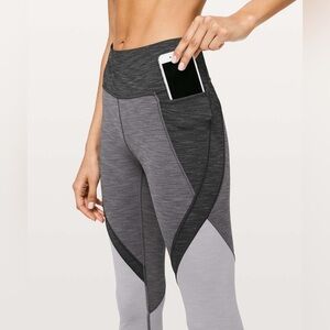 EUC Lululemon Early Extension heathered black titanium silver screen Sz 2