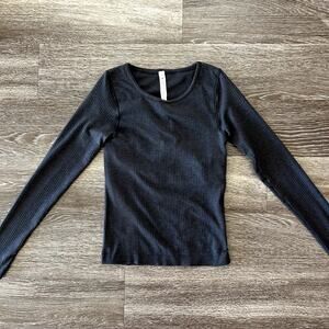 EUC Lululemon Ebb To Street Long Sleeve Ribbed Top with Built-In Bra Sz 6 Black