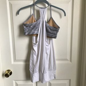 Excellent used condition. No Limits Tank is a loose-fitting, light and airy tank with a combo of circle mesh and moisture-wicking, four-way stretch Luon fabric that is breathable and cottony soft. Built-in bra (removable cups not included). Color is White/Blazer Fossil . Classic style from Lululemon looking for a new home. Price listed is FIRM. Make a bundle with other items for a discount or make an offer for price listed and this item will be yours!