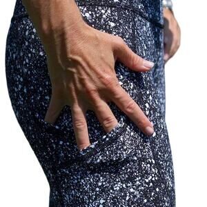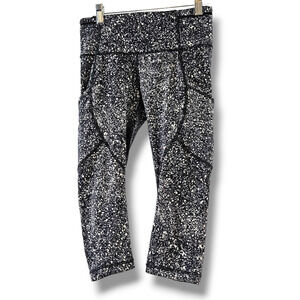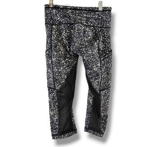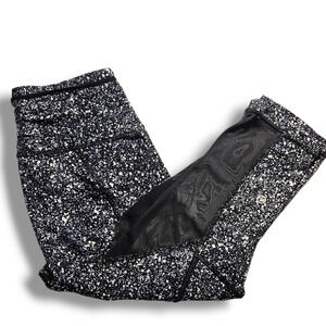 EUC Lululemon Outrun High-Rise Mesh Insert 17" Crop Sz. 4 Splatter White Black