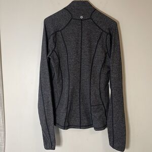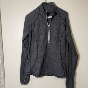 Excellent condition Lululemon Run U-Turn pullover 1/4 zip jacket. No holes, stains, marks, etc. Reflective details. Contoured seaming, soft, warm and comfortable. Size 4. Charcoal gray herringbone-type design all over.