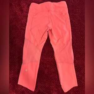 EUC Lululemon on pace 21’ cropped glossy pink leggings.Size 8