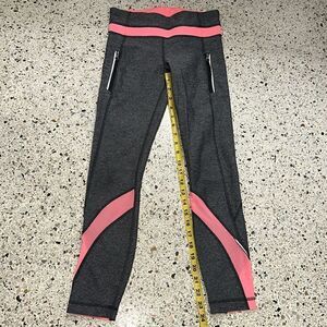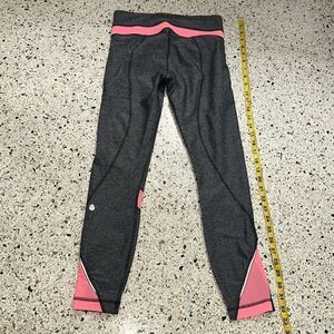 EUC Lululemon grey gray coral orange sheet panel leggings crop 4