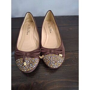 EUC Luo Luo Brown Suede with Rhinestones Ballet Flats/Sz. 6.5