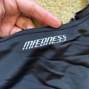 EUC, minor cracking on the label in the front but not obvious. Unpadded. Cute basic but the asymmetric straps make it look unique. Size M but there is no size tag. I am generally in between a size S and M and this fits me. Fabric is stretchy.