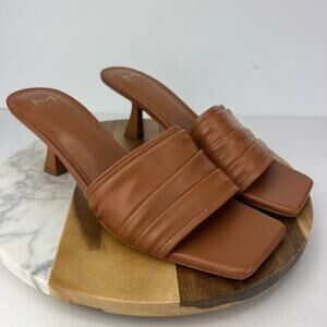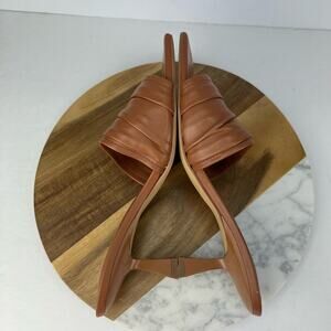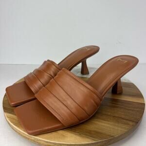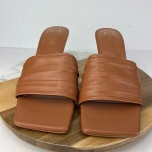 EUC MARC FISHER LTD CALENO Sculpted Kitten Heel Square Toe SANDAL MEDIUM NATURAL 9.5