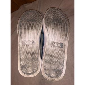 EUC MIA "pepe" blue slip on sneakers embroidered patches size 8 girls