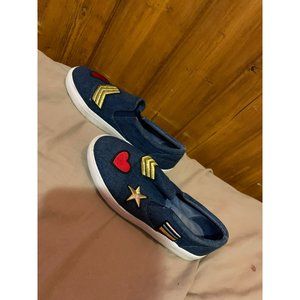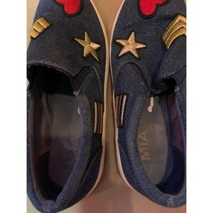 Blue slip on sneakers for girls MIA size 8 embroidered patches stars and hearts