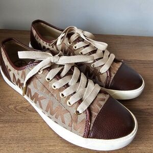 EUC MICHAEL KORS LEATHER/TEXTILE LOGO SNEAKERS SIZE 9 WOMENS
