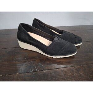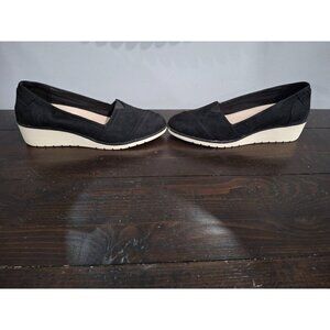 EUC MIa Amore Keana Black Suedette Wedge Slip-ons/Size 7