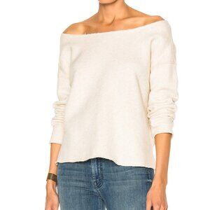 EUC MOTHER Denim "The Cold Shoulder" Raw Wash Sweatshirt, Cream, Size XS
