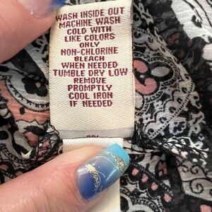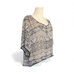 🖤💗 EUC MUDD Boho Black, Pink & White Hi-Low Button Front Top | Sz XL