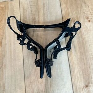 Elegant - Gorgeous Black Beaded Strappy Open Toe Heel / Sandal