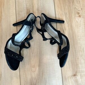 EUC Madeline Stuart 4" Black Strappy Beaded/Gem Heel-Sandal Size 7M